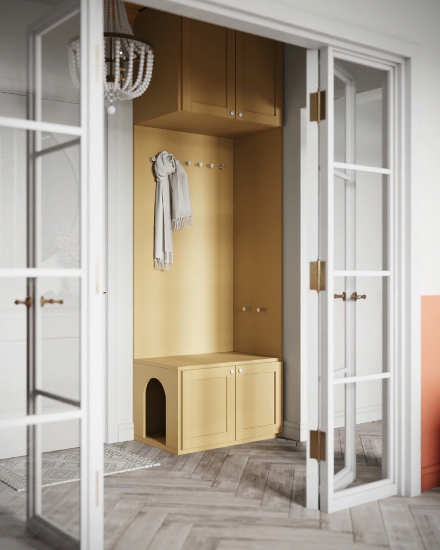 *Интересный момент: спрятанный в мебель лоток в прихожей.