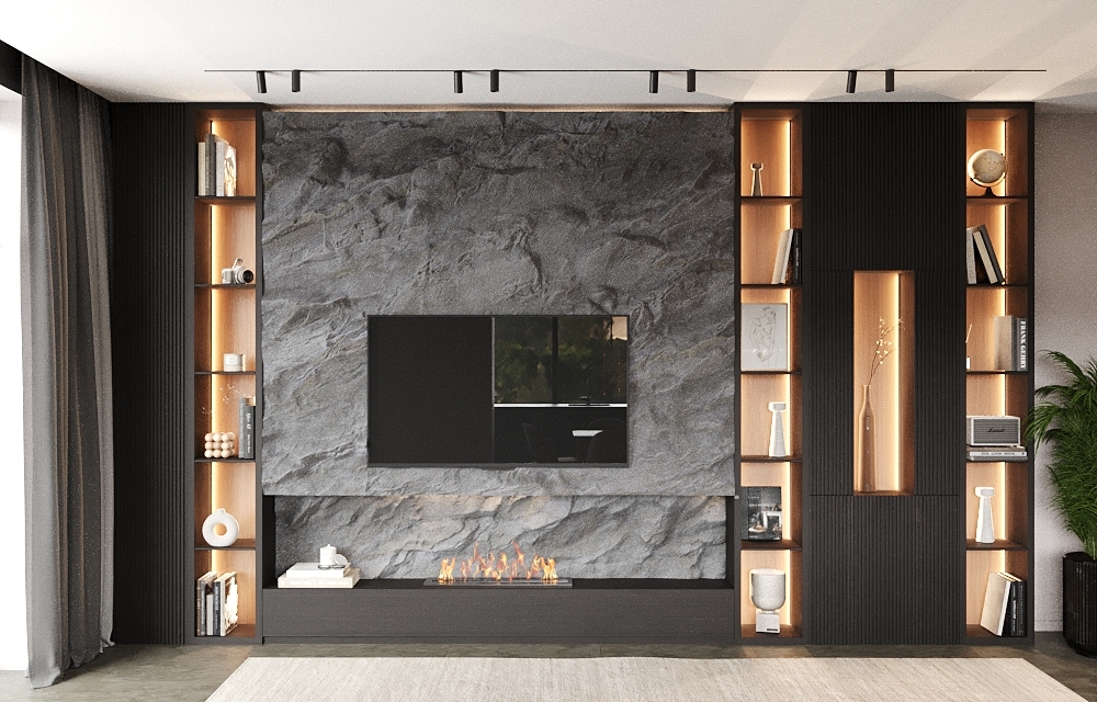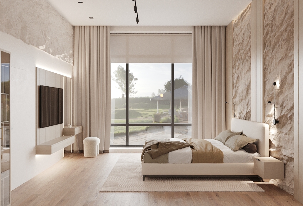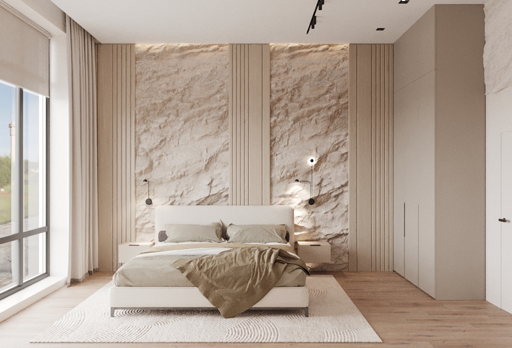 — Но не будет лишним добавить немного разнообразия в виде камня в спальне над кроватью и в ванной.