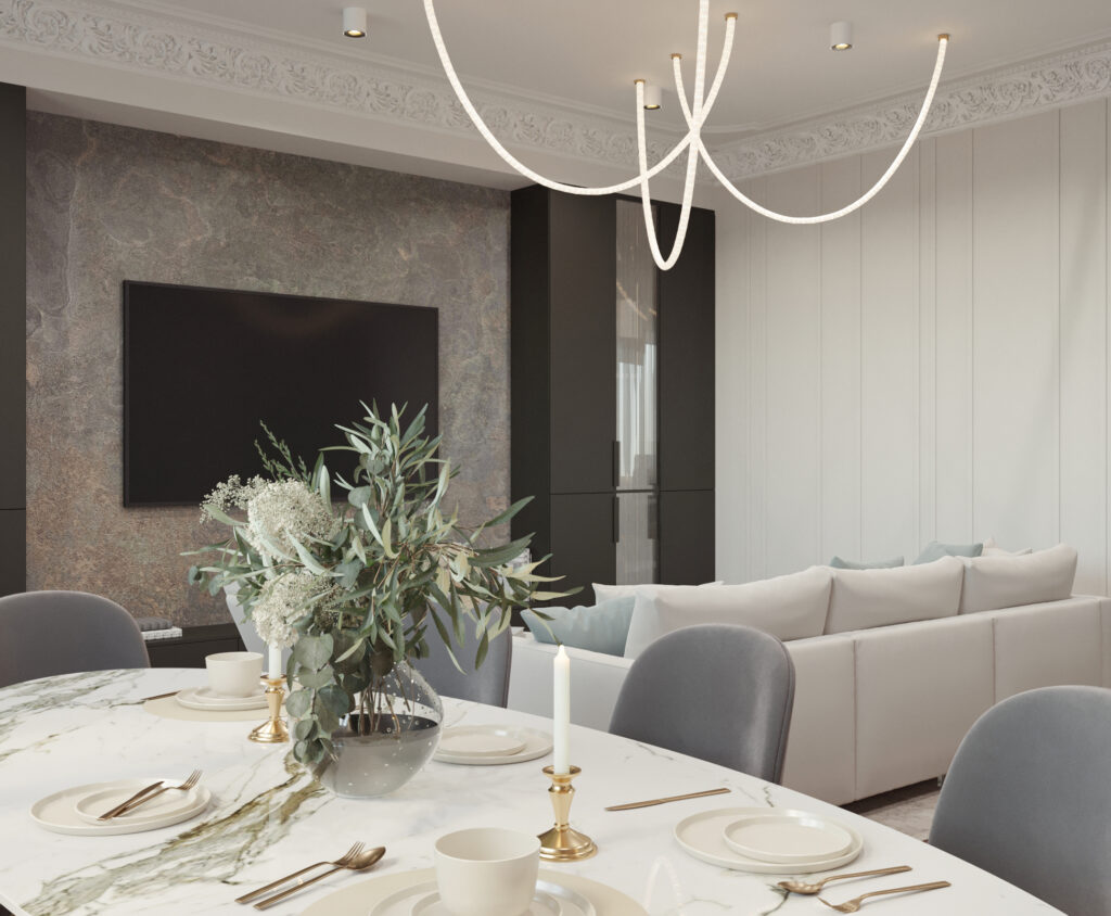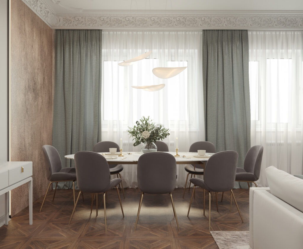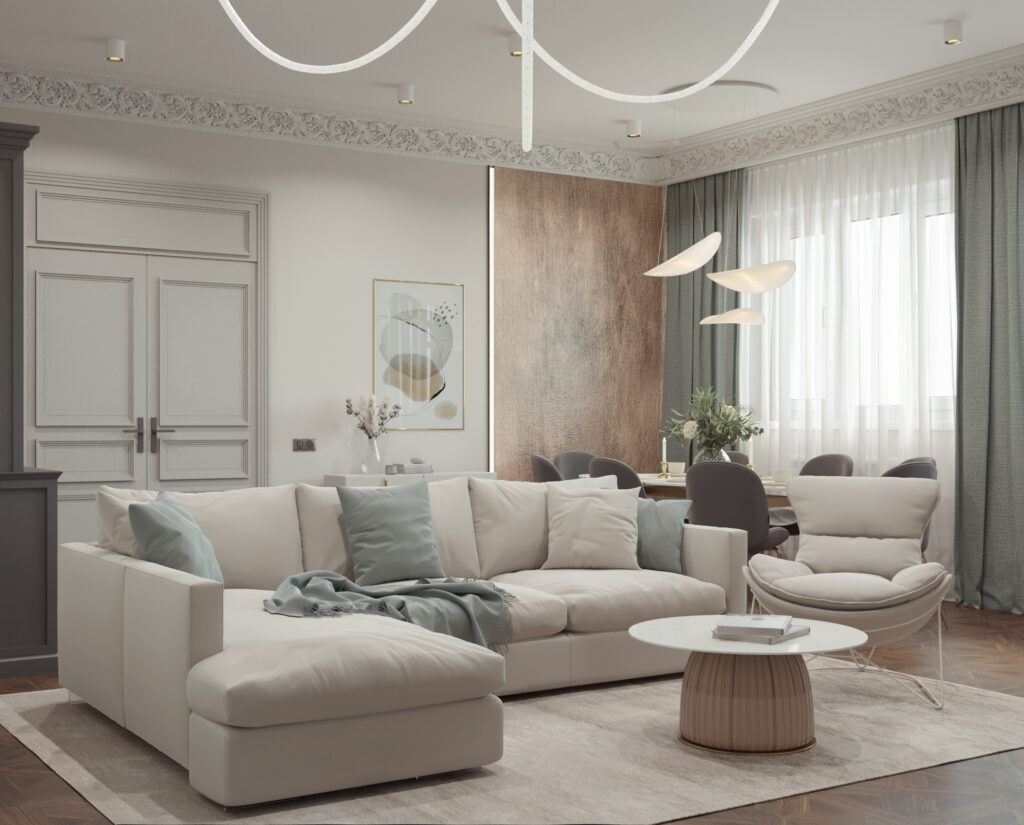 — Неоклассика подойдёт для домов с просторными помещениями, большими площадями и высокими потолками.
