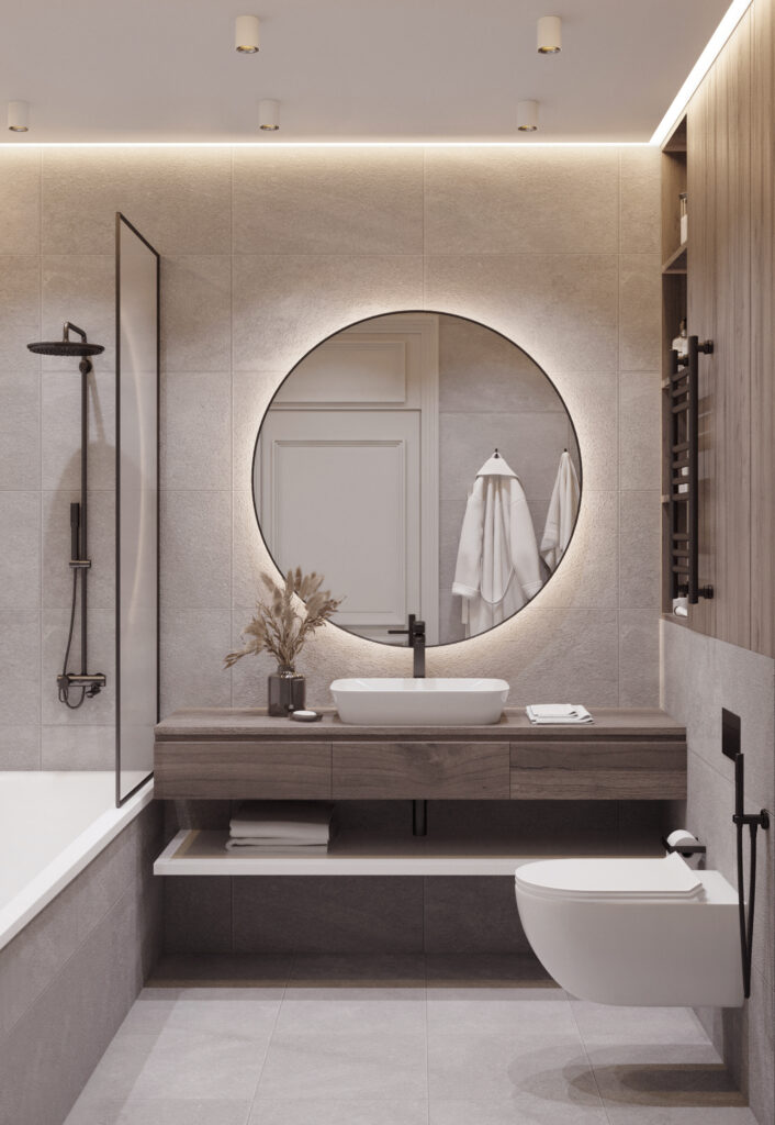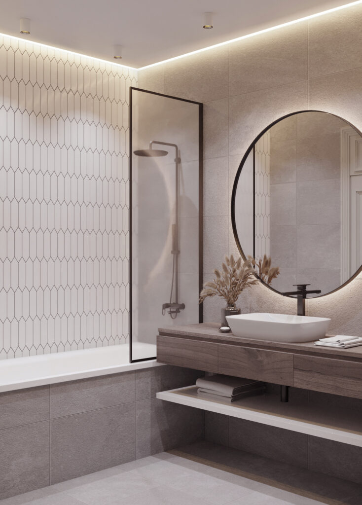 — Решили использовать такие материалы, как керамогранит на полу, дерево в спальнях и гостиной. Также интересным решением будет использование шпон камня.
